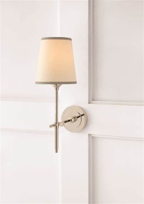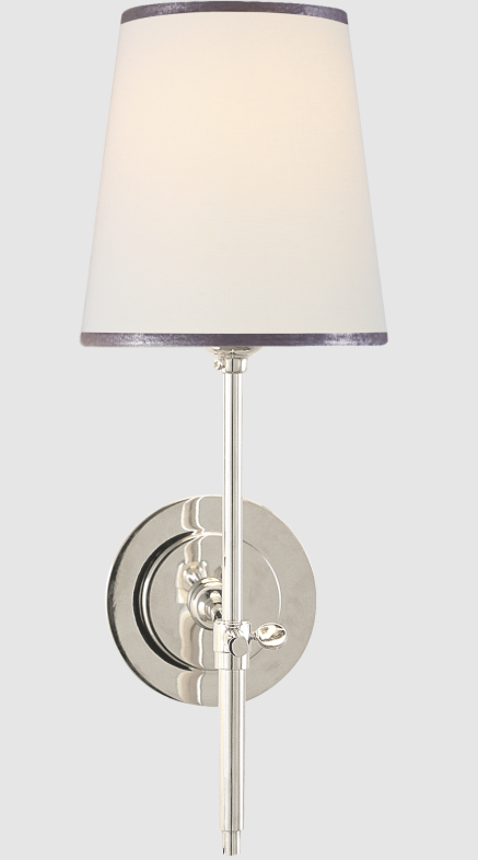 Bryant Sconce with Silver/Gray Trim Linen Shade, Visual Comfort